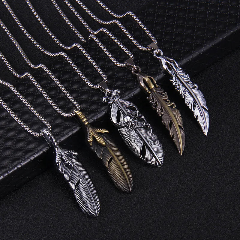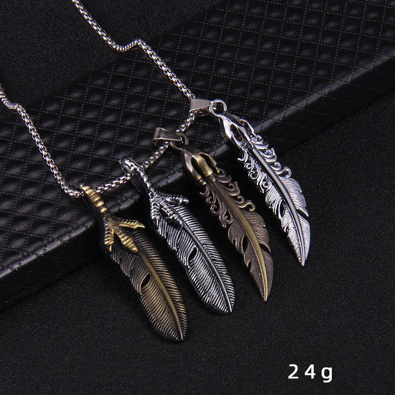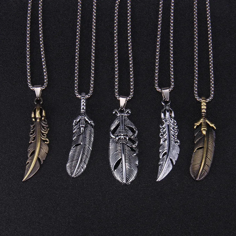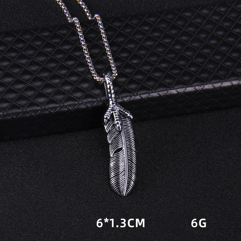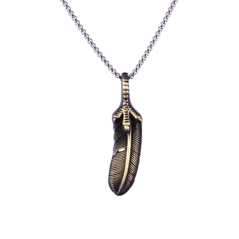 This eagle claw feather necklace pendant is designed to add a touch of retro style to your jewelry collection. Crafted from stainless steel with an electroplating treatment, it features a feather shape and a square pearl chain.