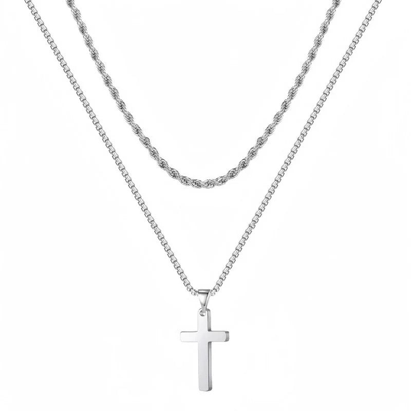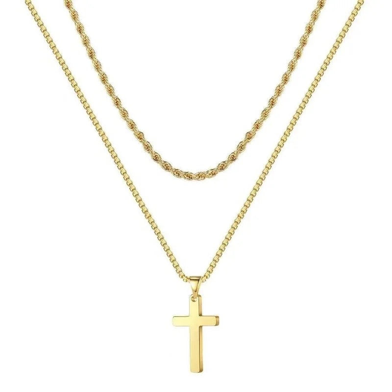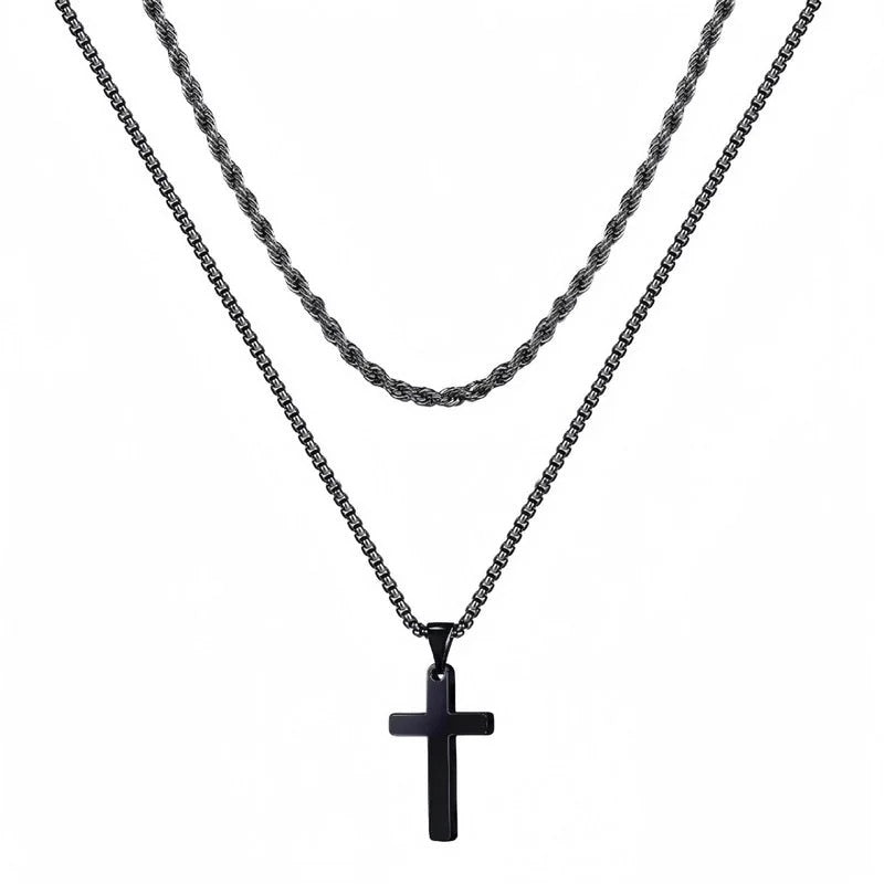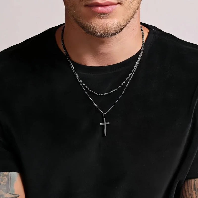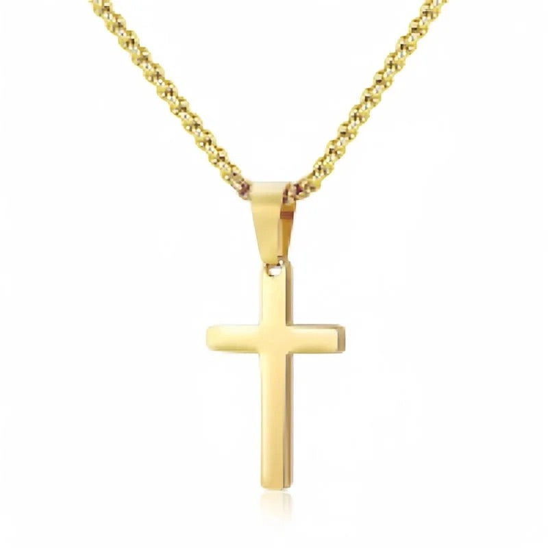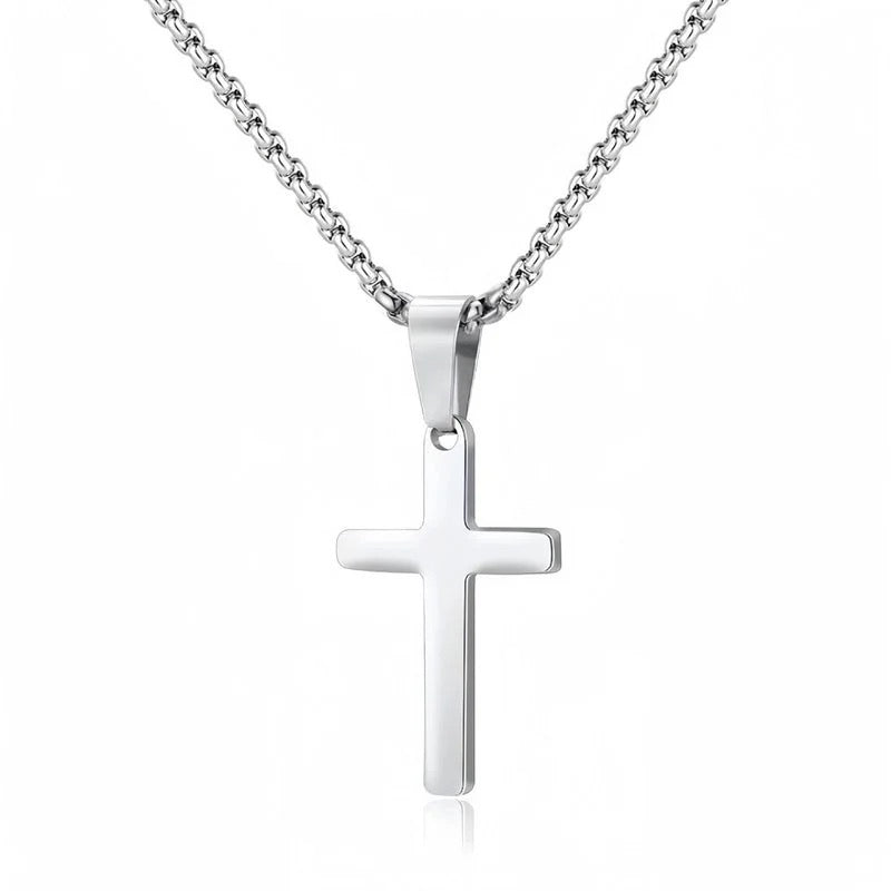 he Titan Cross Necklace features a sleek, durable titanium steel cross pendant, designed for a modern and stylish look. Known for its strength and resistance to corrosion, titanium ensures long-lasting wear while maintaining a lightweight feel. Perfect for both casual and formal occasions, this necklace offers a bold yet timeless statement of faith and fashion.